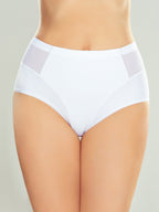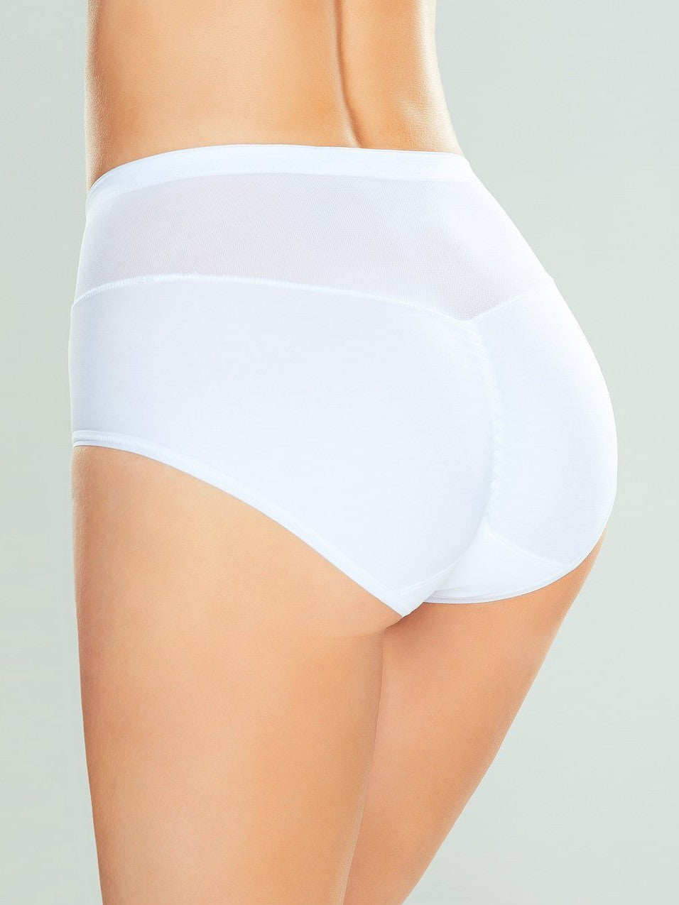 Pohodlné, tvarujúce nohavičky z hladkého mikrovlákna. Zdobené jemnými sieťovanými vložkami, priliehavo obopínajú bruško a boky.