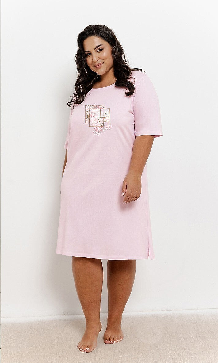 Ľahká a vzdušná dámska košeľa z vysoko kvalitnej bavlny. Krátke rukávy a okrúhly výstrih zaisťujú pohodlie, zatiaľ čo trblietavá potlač dodáva decentný nádych. Dĺžka nad kolená je ideálna na teplé dni.