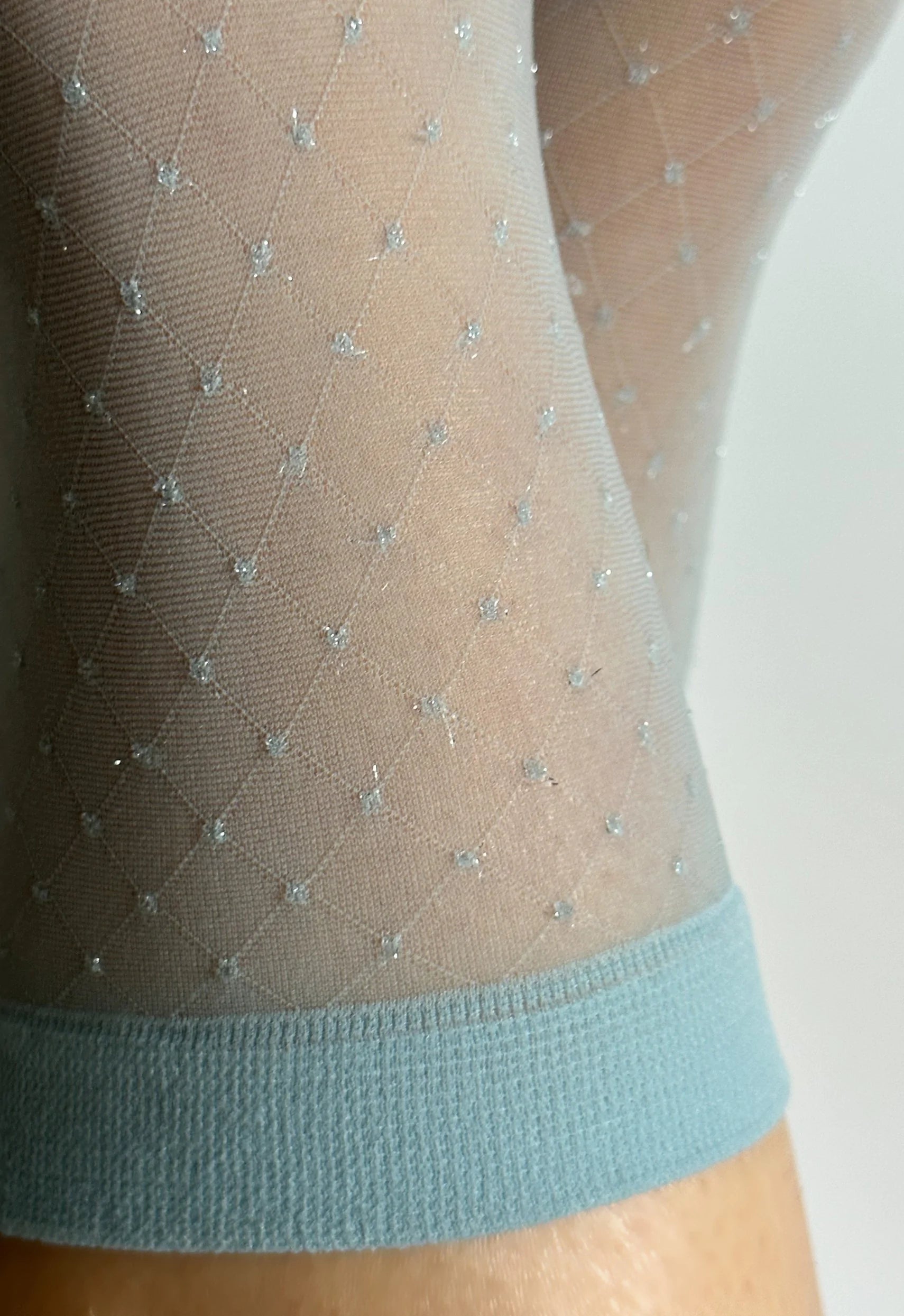 Luxusné ponožky Abril od Veneziany, dostupné v rôznych farbách. Decentné, lesklé ozdoby dodávajú eleganciu a pohodlná manžeta zaisťuje pohodlie. Perfektne sa hodia k nohaviciam, ktoré odhaľujú členky.