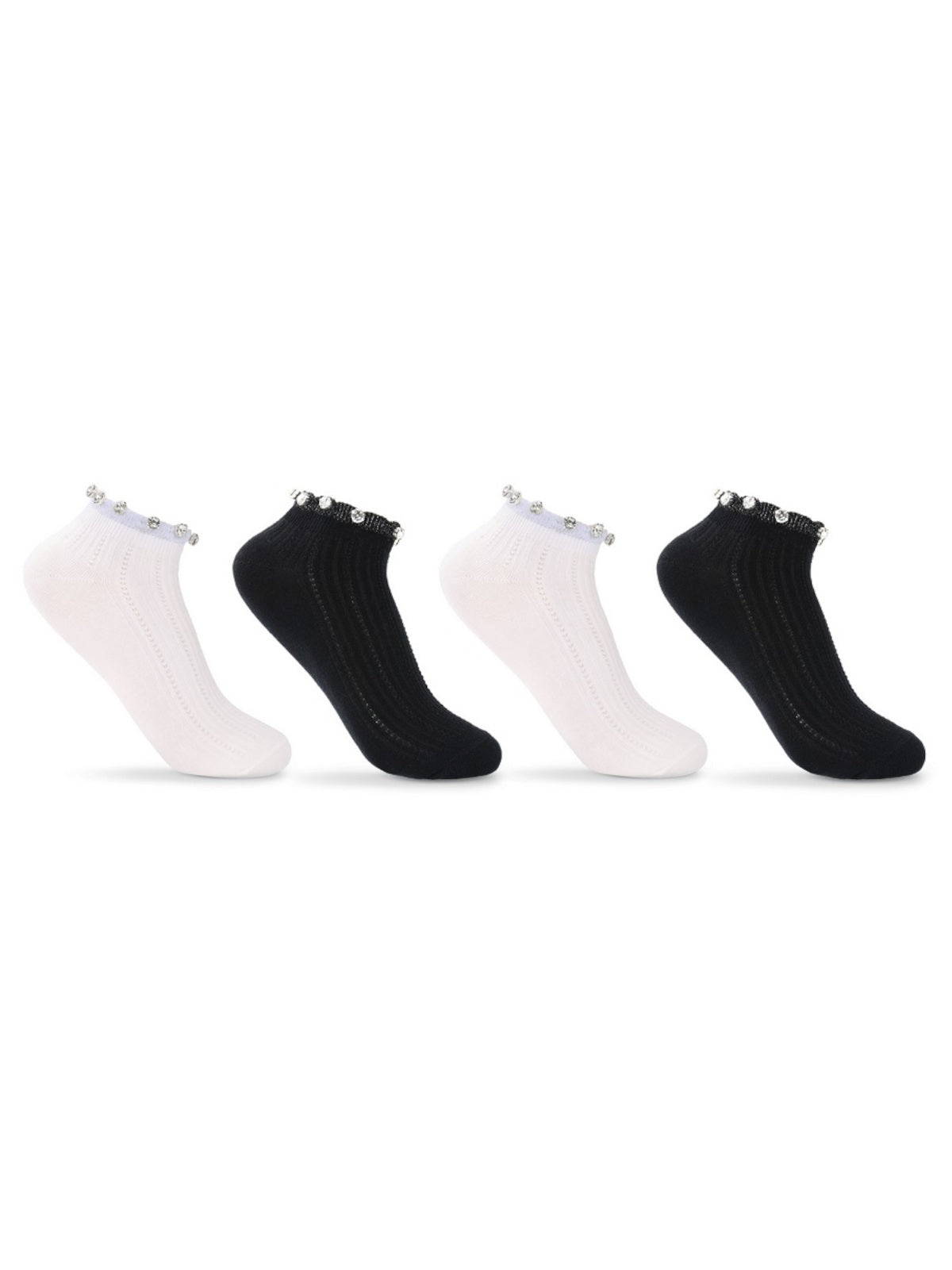 Dámske hladké bavlnené ponožky, zdobené striebornou lurexovou niťou a kryštálmi na manžete. Univerzálna veľkosť 36-41.